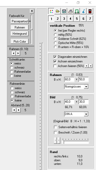 Mit diesem Programm kann man ein Bild nun optimal per Passepartout in einem Rahmen positionieren.